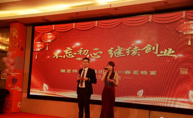 在年轻俊美的男女主持人热情而富有感染力的晚宴问候词中,拉开了瑞圣特科技集团2019年春茗晚会的序幕。