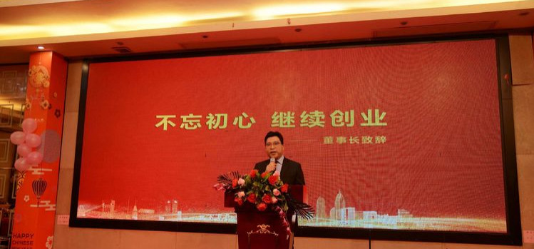 在热烈而雷动的掌声中,集团董事长兼总经理李总以主题"不忘初心,继续创业"发表了富有前瞻性指导性的晚会致辞!