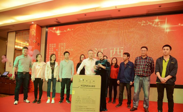 公司高管杨总监与易总监分别为现场抽取5名幸运奖并合影留念!