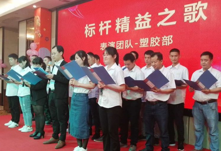 注塑部与模具部共同演绎的由《真心英雄》改版的《标杆精益之歌》,歌声嘹亮,荡气回肠!
